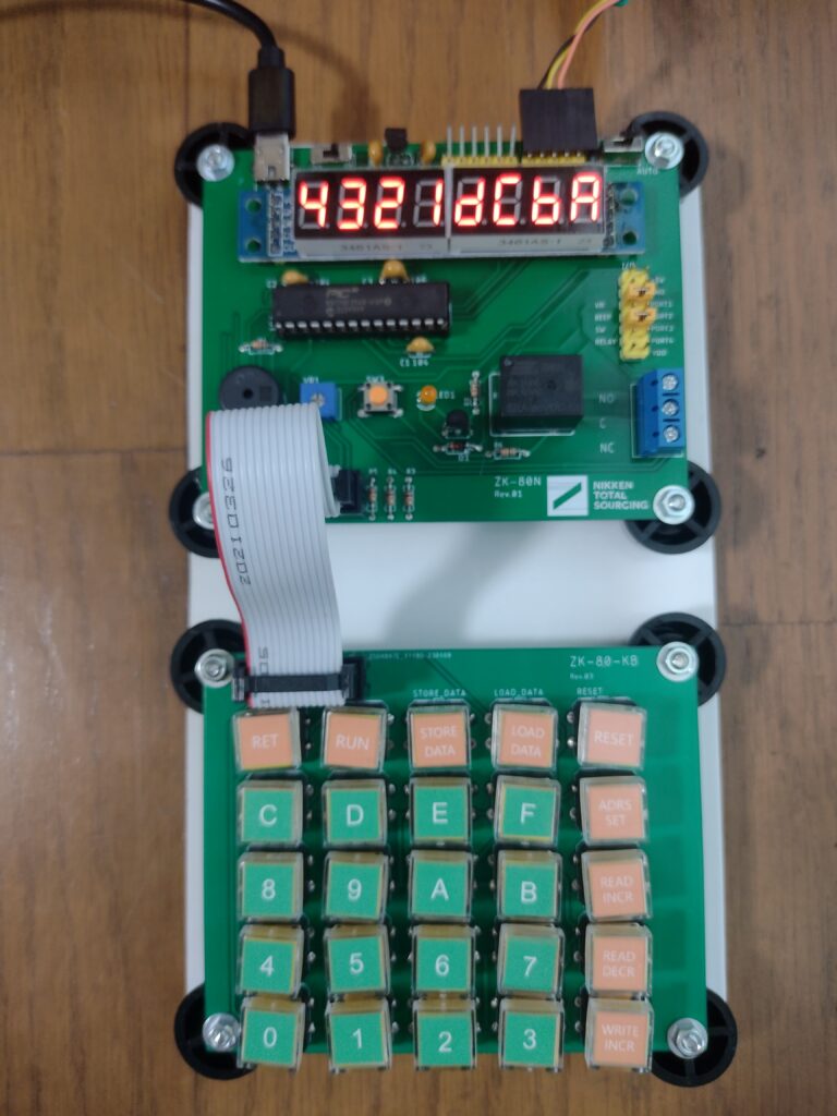 パソコンでプログラムを書いて、機械語はケーブルで送信します。